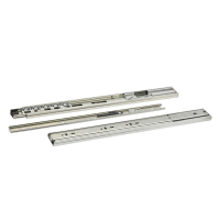Эти направляющие имеют толщину стали 1.5 мм и рассчитаны на нагрузку 35 кг. Их телескопический механизм обеспечивает полный доступ к пространству ящика а их ход мягкий и бесшумный. Система фиксации доводчика работает бесперебойно и имеет двойную защиту от случайного соскакивания.